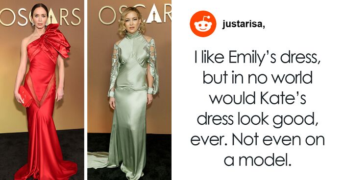Kate Hudson went for a muted green gown that screamed ‘vintage’ but ended up looking like a lost 1930s bed sheet. The satin was oddly loose and had weird cutouts that didn’t really do her any favors. She rocked smoky eyes and curly blonde hair, but the dress? Nope. One fan said, “Not even a model could pull this off.”