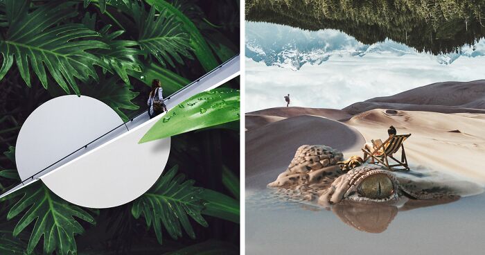 Hey! Check out this crazy series of collages where nature and reality get all mixed up in trippy ways. It’s like your brain went on a wild adventure through stuff you thought you knew, but then BAM - surprise! Enjoy the wild ride.
