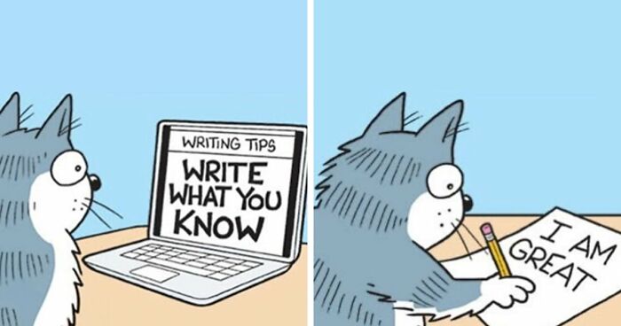 It’s like he’s sneakily watching your cat, then turning that into comic magic you can’t help but laugh at.