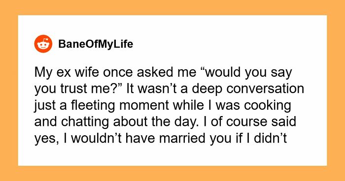 My ex once casually asked if I trusted him. I said, 'Of course!' Fast forward a few months... yeah, guess what?