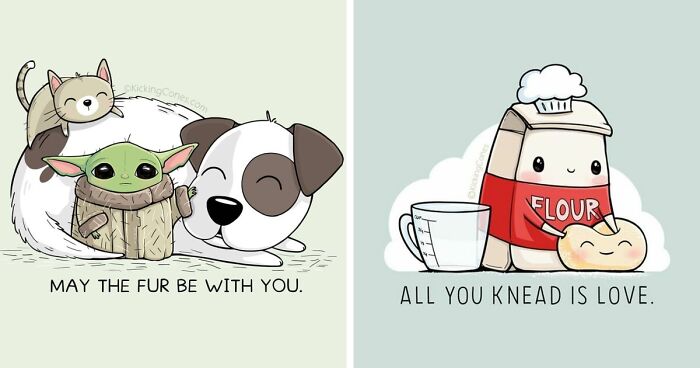 Hey! Today we’re checking out some adorable art that’s all about fun puns and silly characters, brought to life with tons of charm. You’ll see animals contorting like crazy, fruits acting all cute, and clever wordplay turning these simple doodles into whole mood boosters.