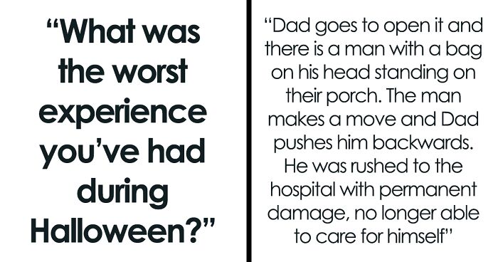 My friend’s grandpa dressed up for a prank, but when he tried to sneak into their house, he fell and cracked his head. It was so bad he needed care, his family split up, and Halloween got super serious. Oops.