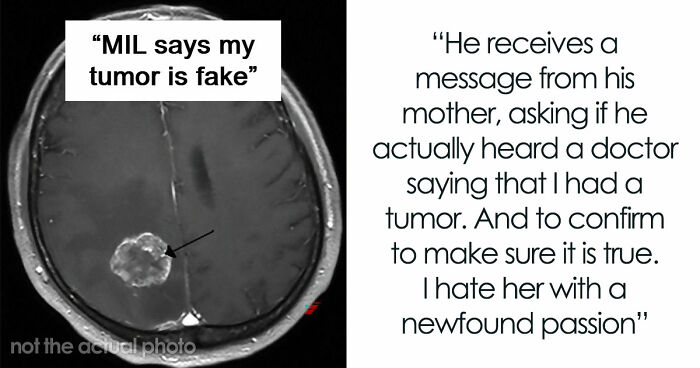 Quick rant: I was hospitalized with a brain hemorrhage and found out I had a tumor. Spent the night crying and hoping to be around to see my baby grow. A few days later, I’m home cuddling my husband when his mom texts asking if he actually heard a doctor say I have a tumor and if it’s really true. Like, for real? She knew he visited me in the hospital. There’s no reason to doubt me. I was too overwhelmed to argue and still dealing with pain, but I’m full of rage now. She doesn’t like me—but this took it to a new low.