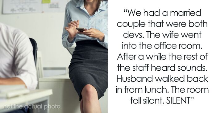 Imagine this: frosted office windows so you can’t peek in, but sound gets out loud and clear. A married dev couple is sneaking around, stirring not only spaghetti but also some serious office drama. The rest of the office heard everything and assumed it was the husband inside - until *he* walked back from lunch. Cue the awkward silence and chaos when the husband and CTO got into a brawl, and the wife stormed out looking like a tornado swept through. The fix? Frosted windows now only cover halfway down so feet and legs are always visible. Problem solved? Kind of.
