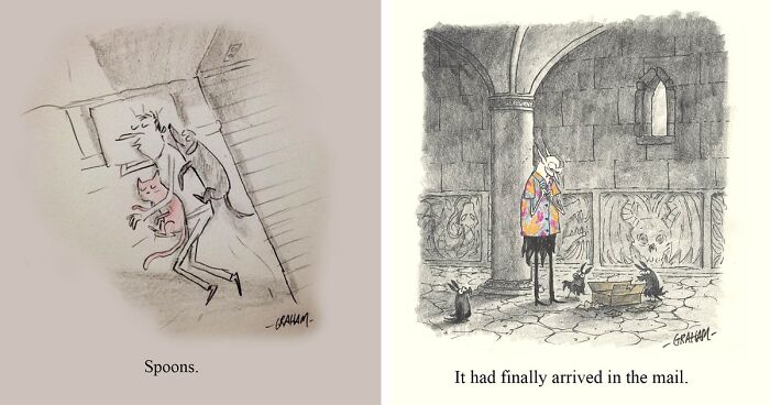 Hey! Today we're diving into some super quirky comics by Graham Annable, aka Grickle. He takes those quiet, slightly odd everyday moments and turns them into little comics that are oddly funny with a dark twist. Think animals stressing out like humans and normal stuff getting weird. It's simple but totally unexpected and fun.