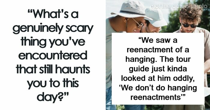 On a school trip, my dad and I saw a guy hanging on gallows with a noose—struggling, kicking, no harness in sight. We asked how it could be safe; our guide said they never did hangings here. When we looked back, the whole scene vanished. Still creeps me out decades later.