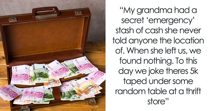 So, grandma apparently hid an emergency cash stash somewhere no one knows. When she passed, the money was gone. Now the family jokes there’s probably a hidden $5K taped under some random thrift store table. Sneaky grandma!