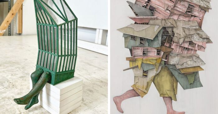 Meet Seth Clark, the artist who makes houses that look like they just got up and started walking around. Using cardboard and collage stuff, Seth creates buildings that aren’t just stuck there - they’re all wobbly, patched up, and full of surprises.