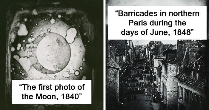 This spooky pic from 1848 shows Paris barricades during a failed uprising - the first known photo snapped live at a news event. Because the camera needed forever to capture it, none of the fighters showed up, just the empty scene. It’s like a ghost story in photo form with loads of history!
