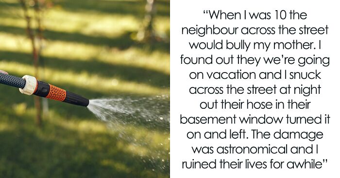 When I was 10, the neighbor was giving my mom a rough time. So, when they went on vacation, I snuck over at night, found their basement window, hooked up their hose, and left it running. The flood damage? Let’s just say it was historic. Their lives were turned upside down... for a bit.