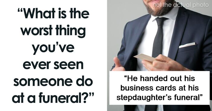 He handed out his business cards at his stepdaughter’s funeral. There was very nearly a fistfight!
