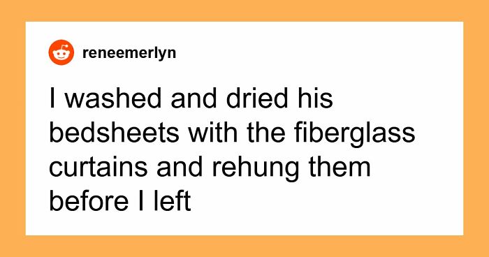 Washed his bedsheets with fiberglass curtains and rehung them before I left. Heard he dropped major cash on dermatologist visits. Worth it.