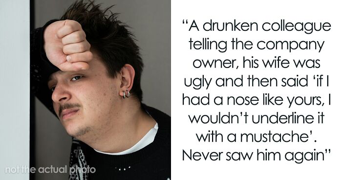A colleague got hammered and insulted the company owner’s wife with a savage line about his mustache. Rumor has it he vanished shortly after and was never seen at parties again.