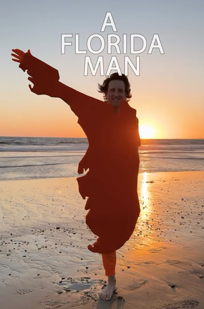 This year’s costume? A giant, orange Florida man shaped like the Sunshine State (because his family moved there so his kiddo can be close to grandparents). His wife and toddler join the fun too - his baby was a hurricane and his wife an alligator. Perfect squad!